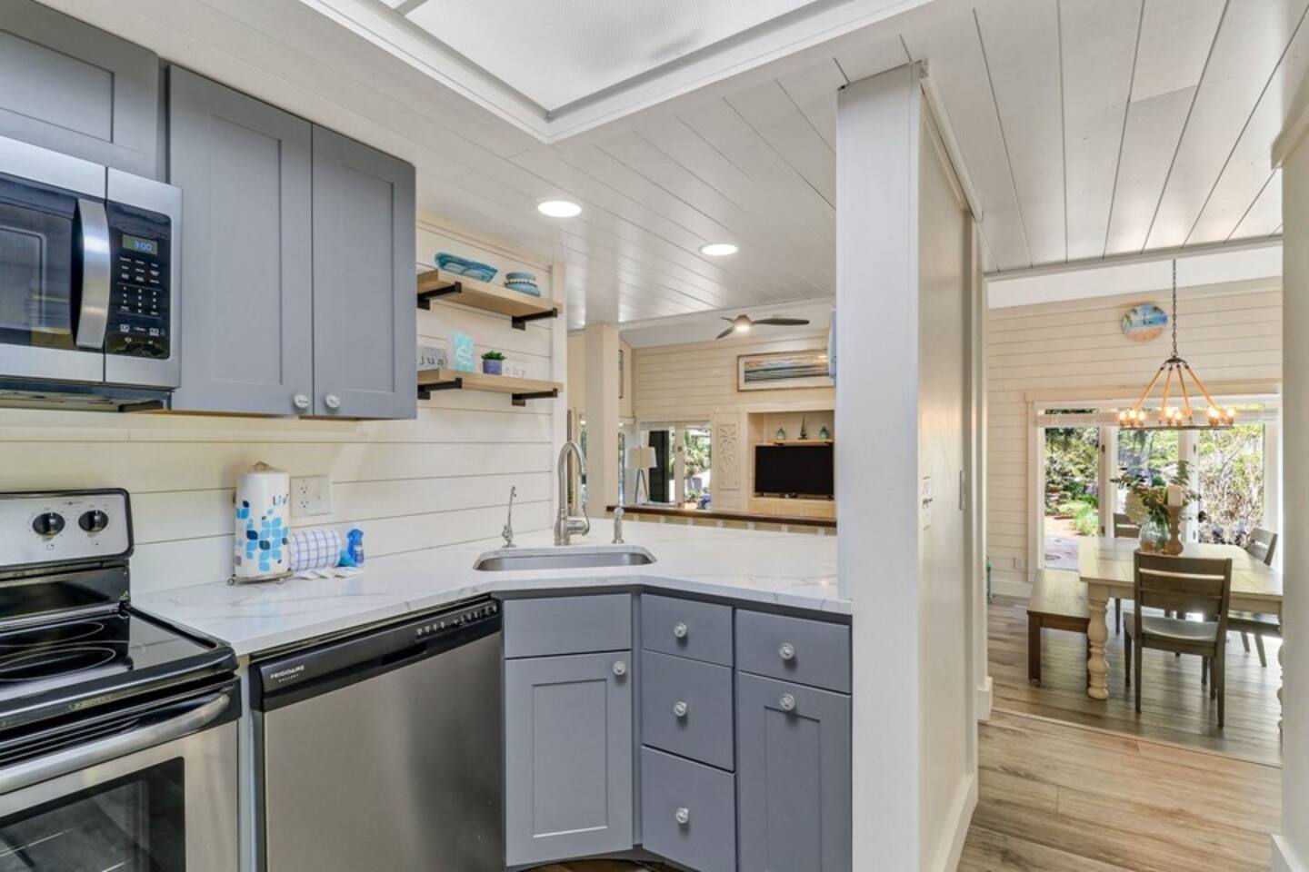 The main bedroom has a king bed, Smart TV and a private bathroom with a walk-in shower. Up the spiral stairs you'll find the loft bedroom area with custom queen bunk beds and a private bathroom with a tub/shower combination. The living room offers a comfy sofa bed for additional sleeping space. With 2 full bathrooms, guests can freshen up with ease after a day of exploring the beach, kayaking the extensive neighboring waterways or enjoying a round of golf. The open concept floor plan features comfortable furnishings, including a sectional sofa and Smart TV. The private balcony can be accessed from both the living area and the main bedroom doors so as to enjoy a morning coffee or perhaps a glass of wine in the evening while listening to the island sounds wind down for the day. The dining area is just off the living room, and additional seating can be found at the breakfast bar. The kitchen features marble counters and stainless appliances. The condo also has the luxury of its own laundry room with washer/dryer. A pack and play and highchair are available for use for families with infants. You're also welcome to use the provided beach chairs and beach toys. Bike rentals can be easily arranged and delivered to the bike racks outside the condo. We are PET FRIENDLY and will happily welcome your furry family members. A maximum of two dogs are allowed and each must weigh under 50lb. A security deposit per pet is required to cover additional cleaning required prior to future guests staying with us.